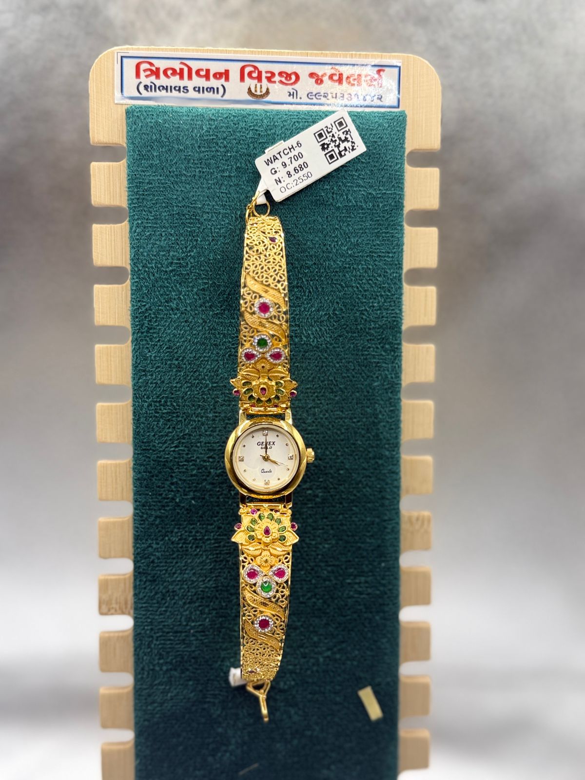 ત્રિભોવન વિરજી જવેલર્સ, તળાજા ખાતે ઉપલબ્ધ છે સુંદર એંટિક લેડીઝ ગોલ્ડ બ્રેસલેટ વોચ, જે મહિલાઓ માટે શાનદાર અને ભવ્ય ડિઝાઇનમાં બનાવવામાં આવી છે. આ લેડીઝ ગોલ્ડ વોચ તળાજા શહેરમાં સૌથી વધુ પસંદ કરવામાં આવતી છે. અનોખી એંટિક ગોલ્ડ વોચ તળાજા ડિઝાઇન સાથે આ ગોલ્ડ બ્રેસલેટ વોચ મહિલા માટે એકદમ યોગ્ય છે – શાદી, ઉત્સવ કે દૈનિક પહેરવા માટે. આજે જ મુલાકાત લો ત્રિભોવન વિરજી જવેલર્સ તળાજા ખાતે અને શોધો તમારી મનપસંદ મહિલા ગોલ્ડ વોચ તળાજા કલેક્શન.